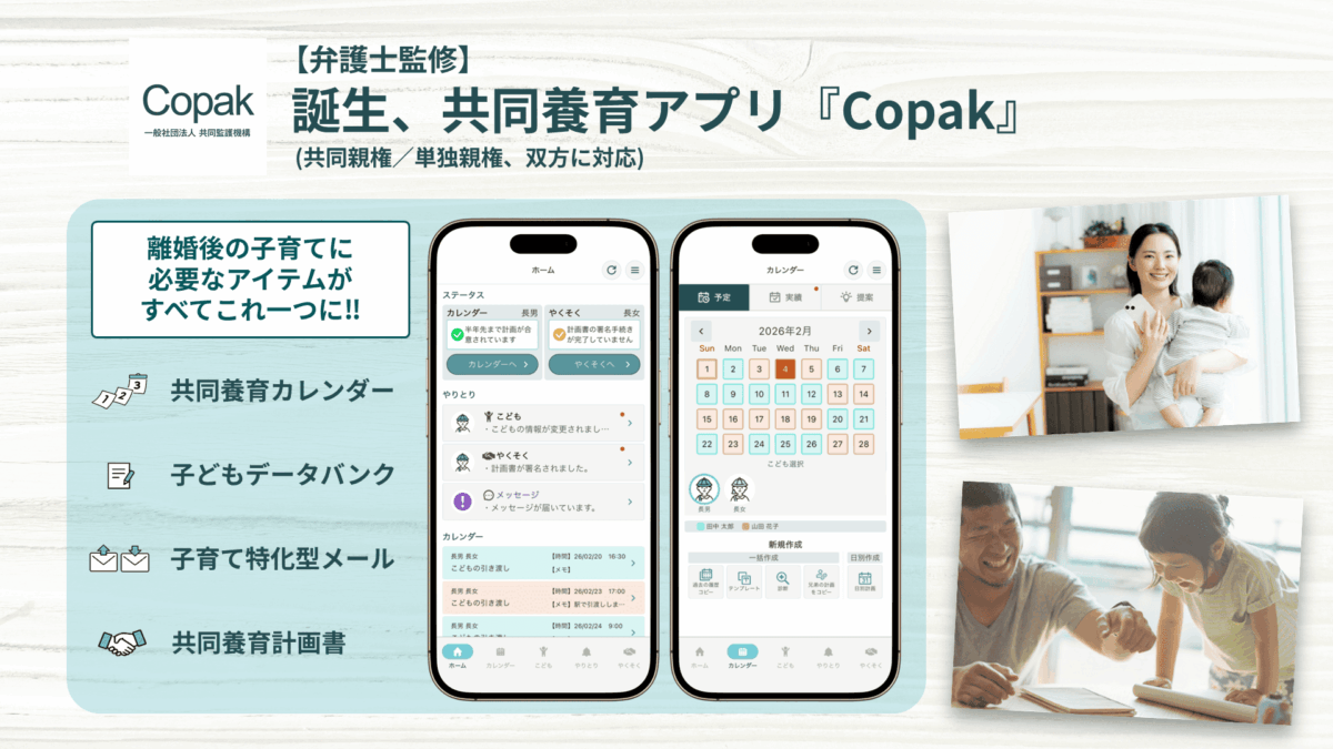 Copakアプリは「誰もが1万円以下で共同養育計画書を作れるツール(※2)」を目指して開発されたものです。