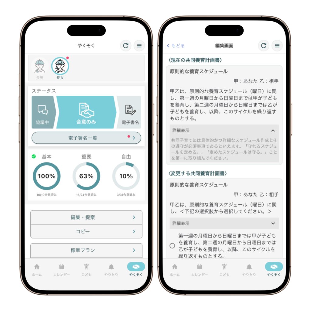 - 電子印機能付きで正式な共同養育計画書・離婚協議書として利用可能。